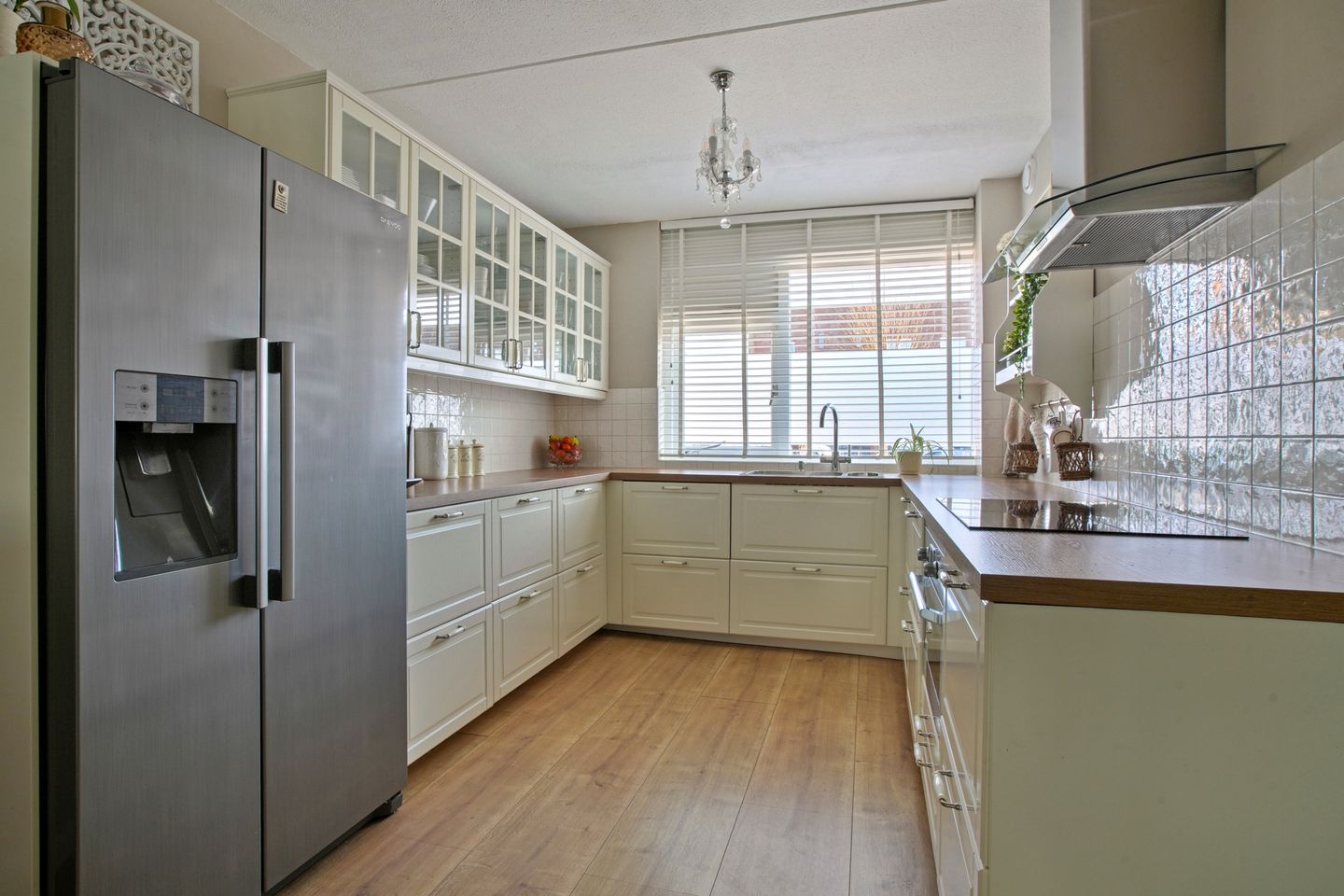De woning beschikt over volop wooncomfort en ruimte voor het hele gezin. Op de begane grond bevindt zich een sfeervolle en ruime woonkamer met veel natuurlijke lichtinval. Aan de voorzijde is de nette, ruime open keuken gesitueerd, die in 2021 is vernieuwd. De keuken is compleet uitgerust met een inductiekookplaat, combimagnetron, Amerikaanse koelkast met vriezer, een kokendwaterkraan met 8-liter boiler en een vaatwasser. De gehele begane grond is voorzien van comfortabele vloerverwarming.