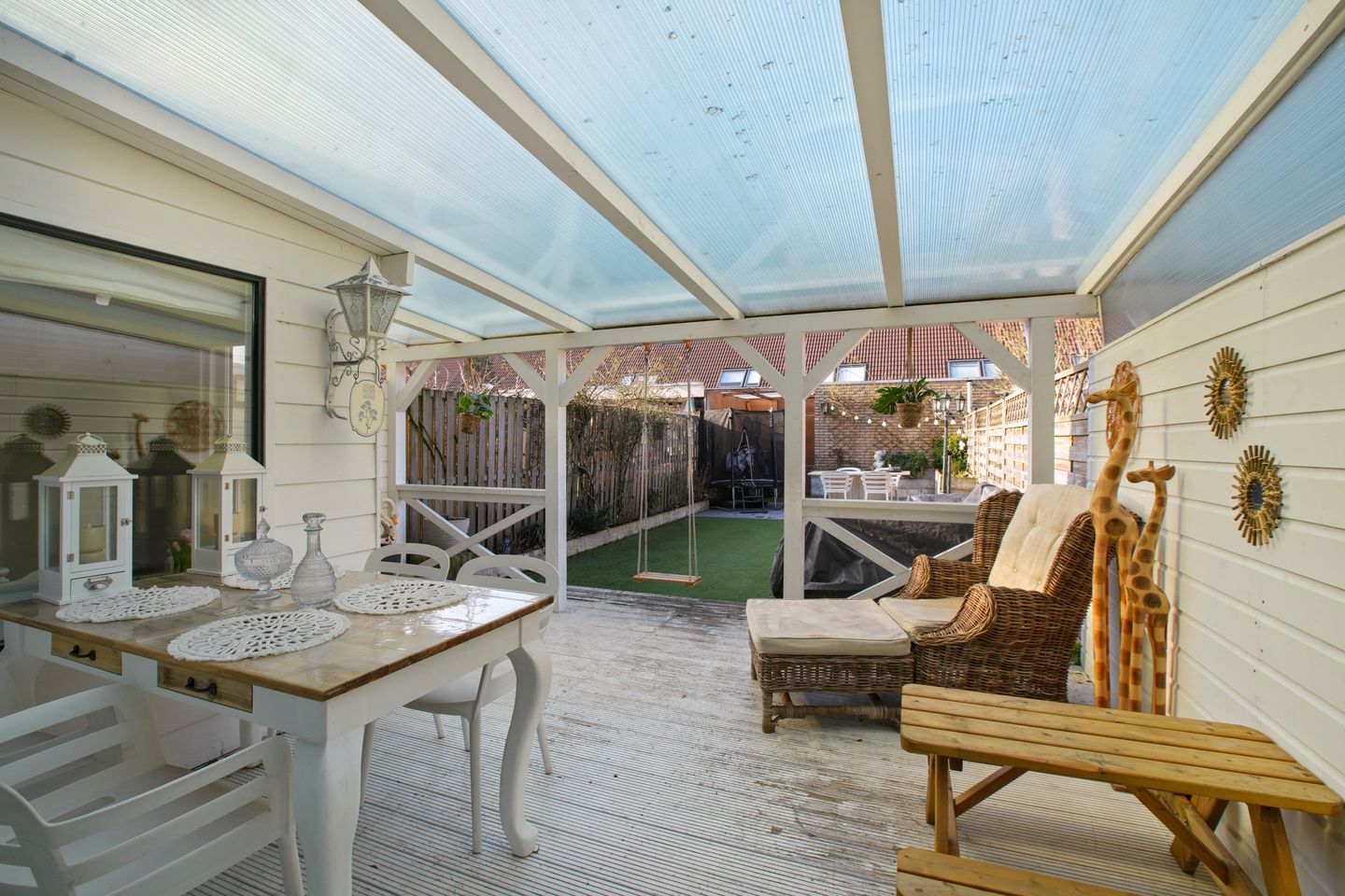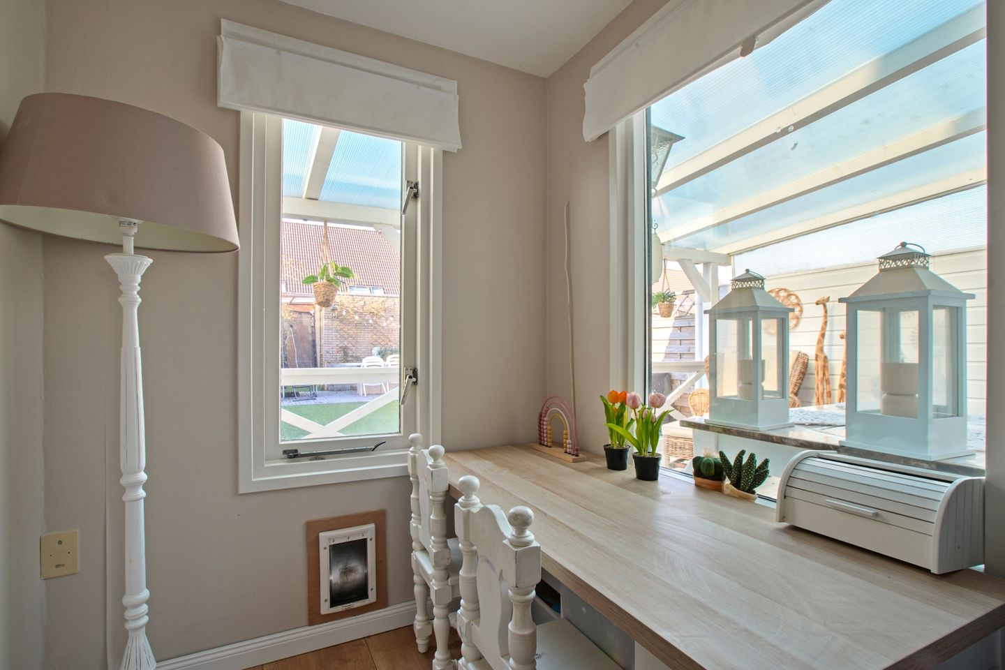 Daarnaast is er op de begane grond een extra kamer aanwezig, ideaal te gebruiken als thuiswerkplek, speelkamer of hobbyruimte. Vanuit de woning is er toegang tot een heerlijke veranda en de grote, diepe tuin, gelegen op het noordwesten. De tuin biedt volop mogelijkheden om te genieten van zon en buitenleven en beschikt over een berging achterin.