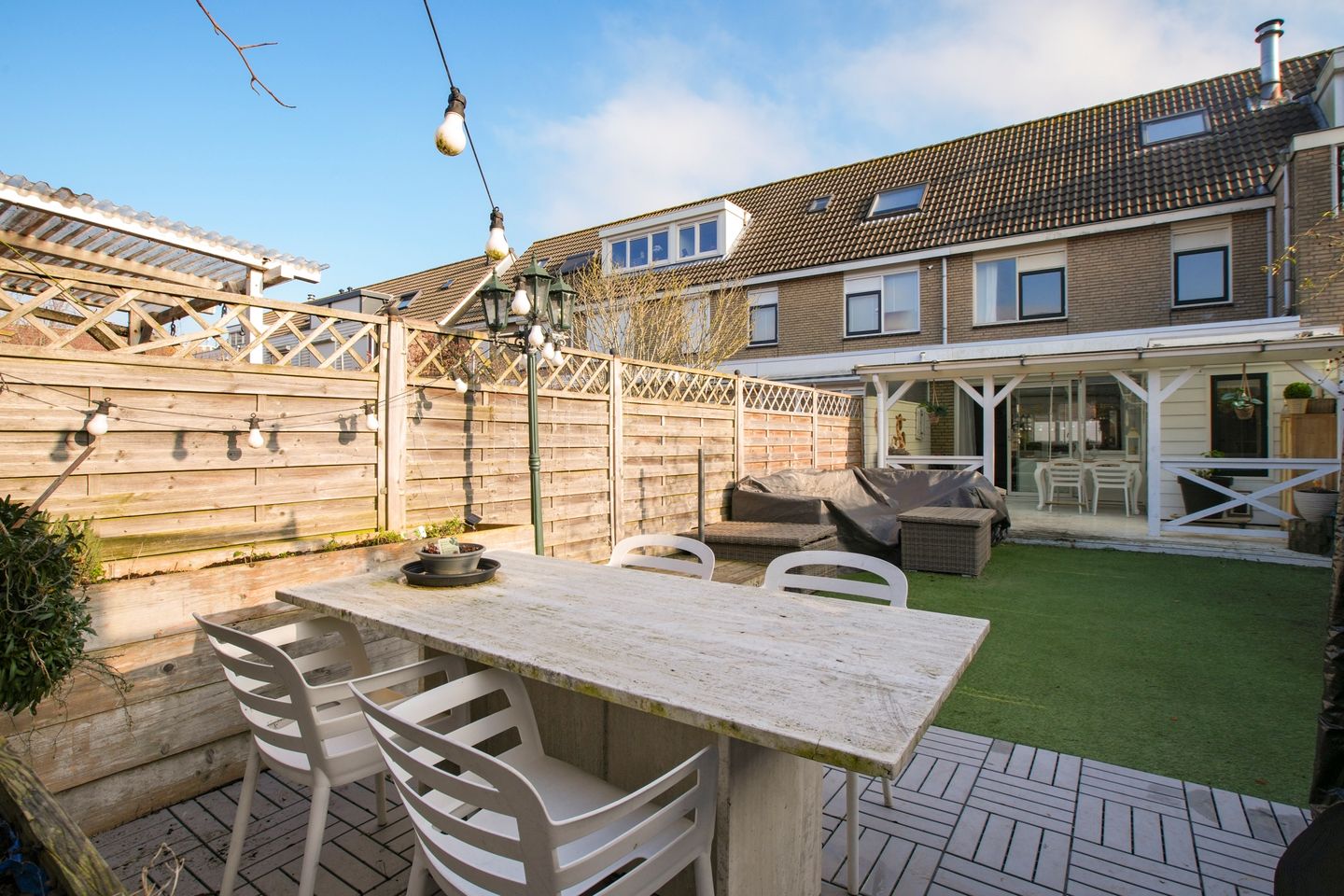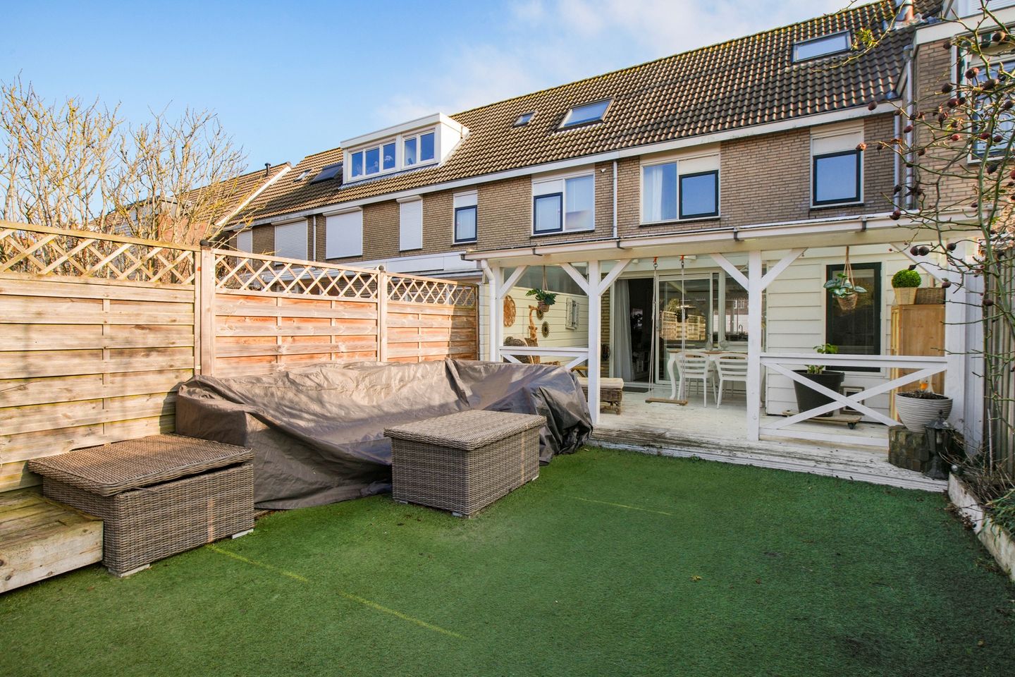 In addition, there is an extra room on the ground floor, ideal for use as a home office, playroom, or hobby space. From the living area, you have access to a lovely veranda and the large, deep garden, which is northwest-facing. The garden offers plenty of opportunities to enjoy outdoor living and sunshine and includes a storage shed at the rear.