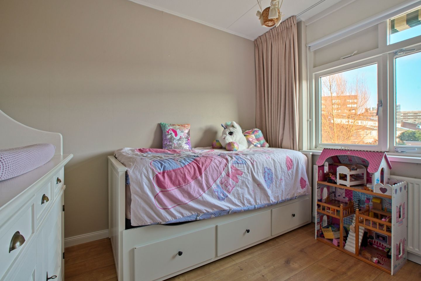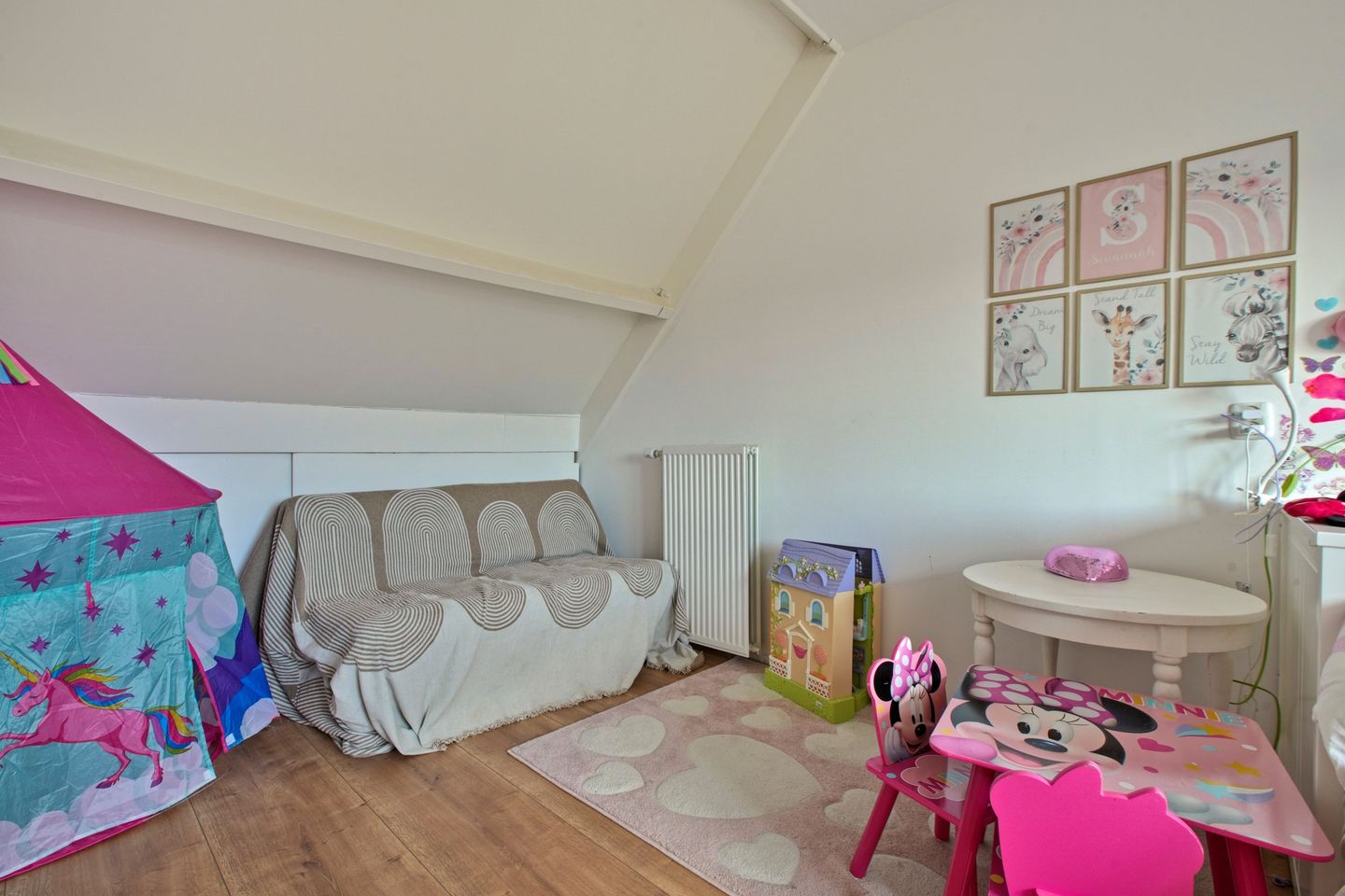 The second floor features a third spacious bedroom and a separate laundry room. Thanks to the dormer and skylight, this floor is filled with natural light. There is also a loft providing additional storage space. The central heating boiler has recently been replaced. The property has an energy label B.