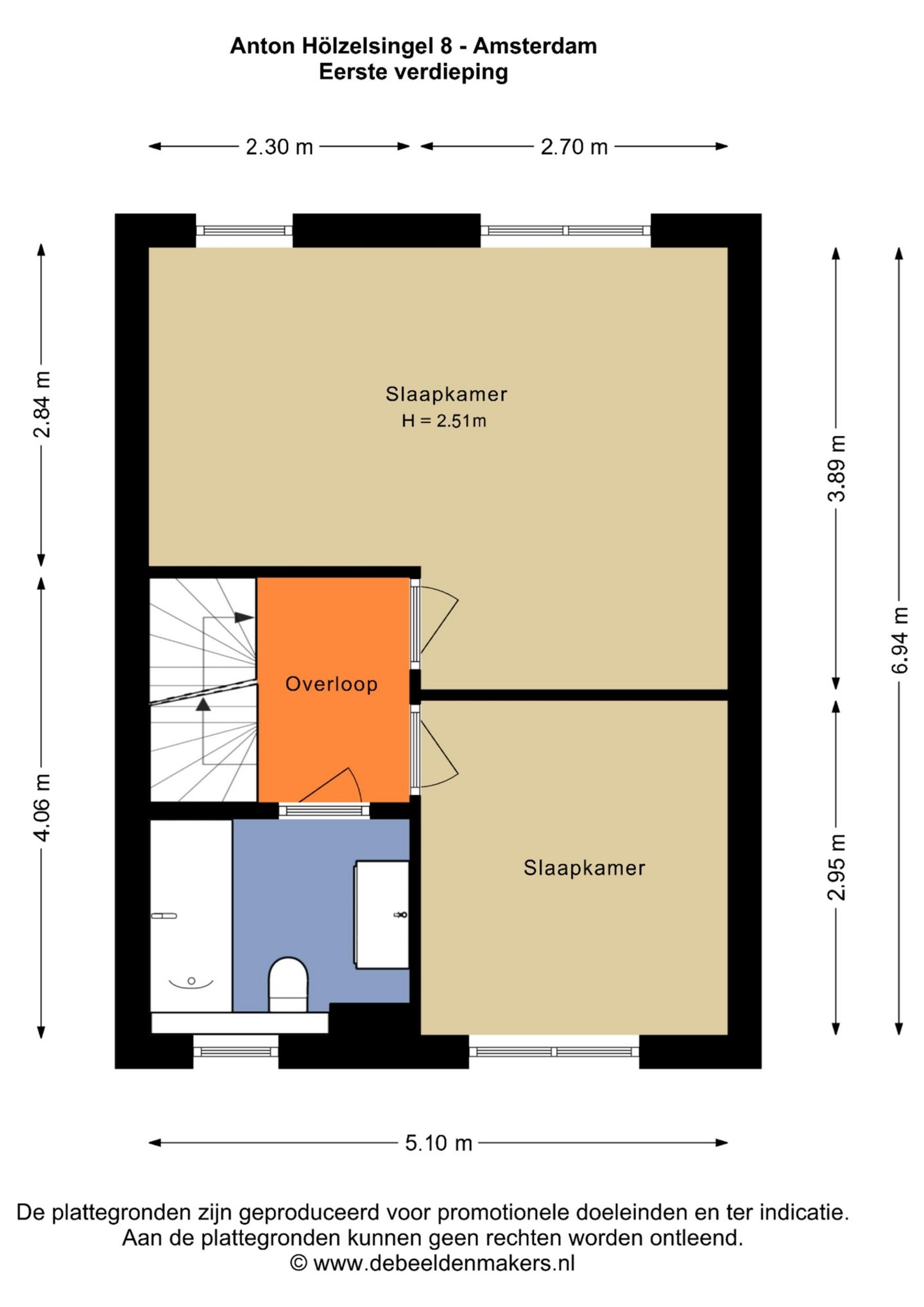 Op de eerste verdieping bevinden zich twee ruime slaapkamers en een moderne badkamer, vernieuwd in 2023. De badkamer is voorzien van een douche, ligbad en een badkamermeubel met wastafel en twee kranen. De master bedroom kan eenvoudig worden gesplitst, waardoor hier desgewenst twee slaapkamers van te maken zijn.