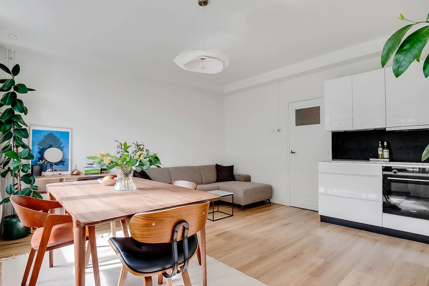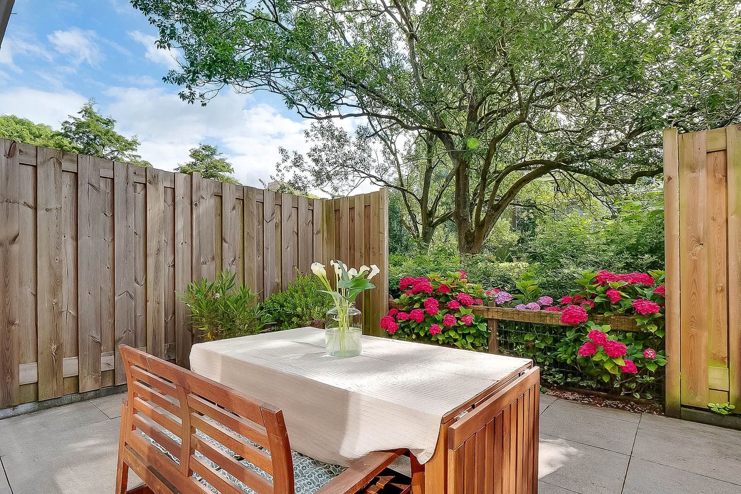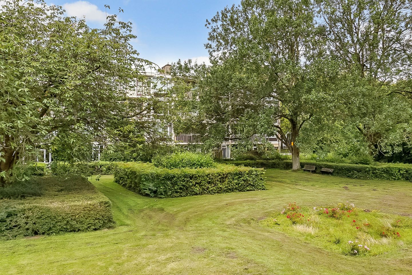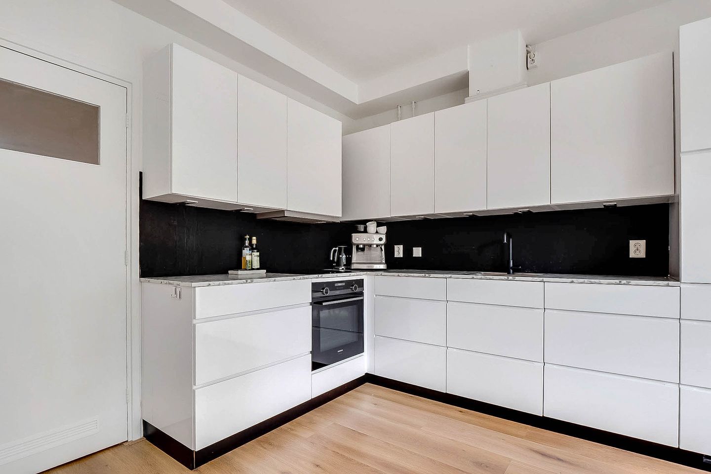 Lovely light two-room apartment in Amsterdam South (Gelderlandpleinbuurt) with an east-facing garden. This apartment is an ideal starter home. You enter the hall of this lovely ground-floor home through your own entrance. The hall provides access to all rooms and has a built-in wardrobe. The spacious garden-oriented living room has large windows that let in a lot of light, the patio door gives access to the garden, which is located on the east. You can enjoy the sun here, or dine outside with friends. The garden of approximately 20 m² offers a lot of privacy due to the green vegetation surrounding and bordering the courtyard of the apartment complex. The open kitchen is equipped with a modern kitchen unit with various built-in appliances from the Siemens brand, namely refrigerator with freezer, induction hob, convection oven, extractor hood and dishwasher.