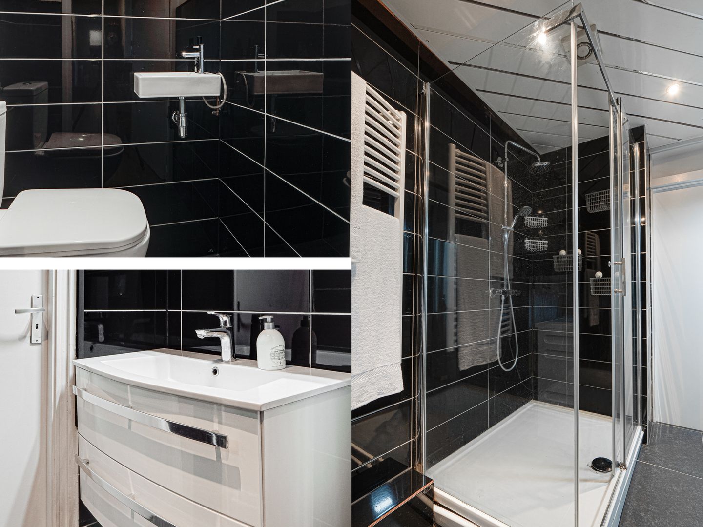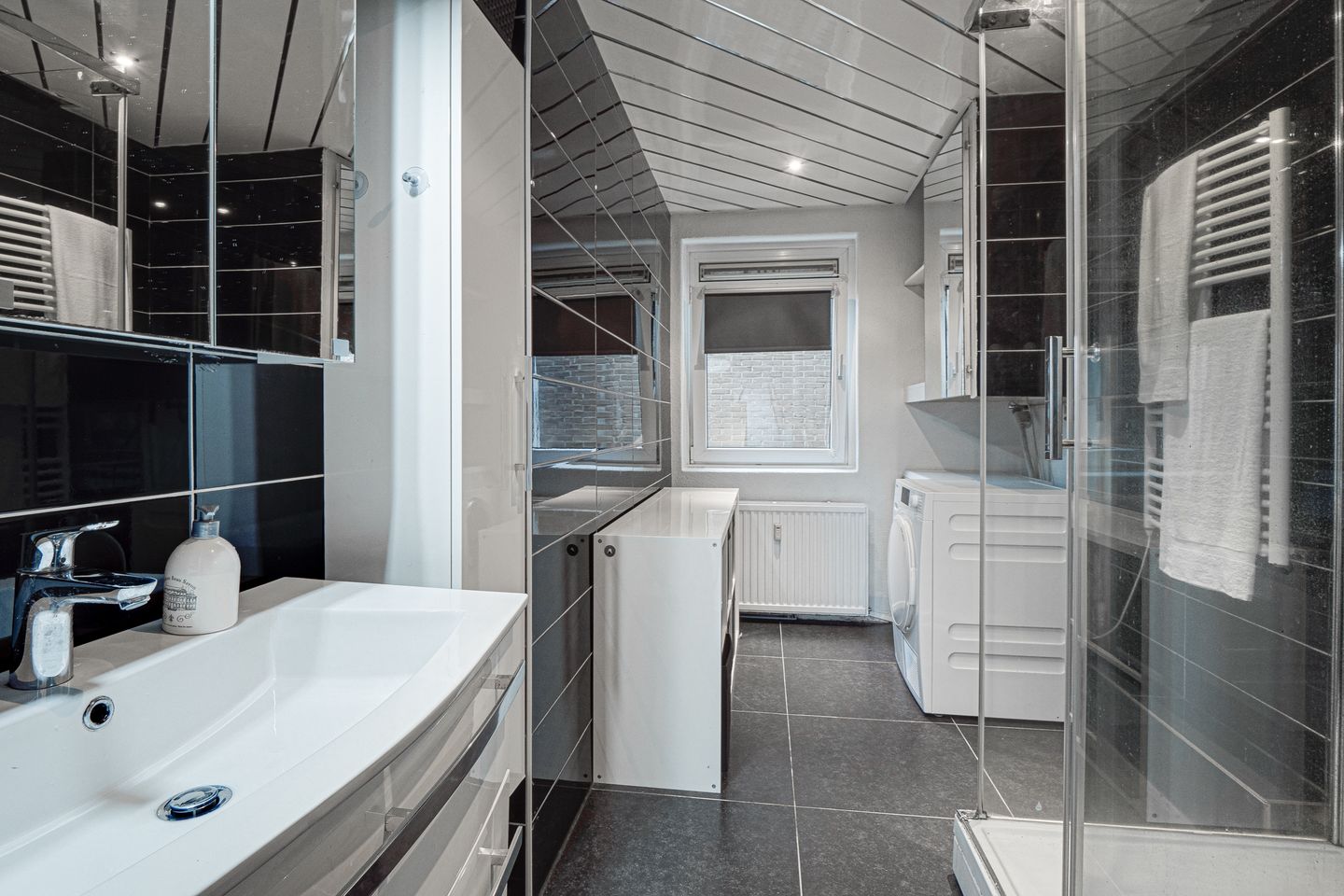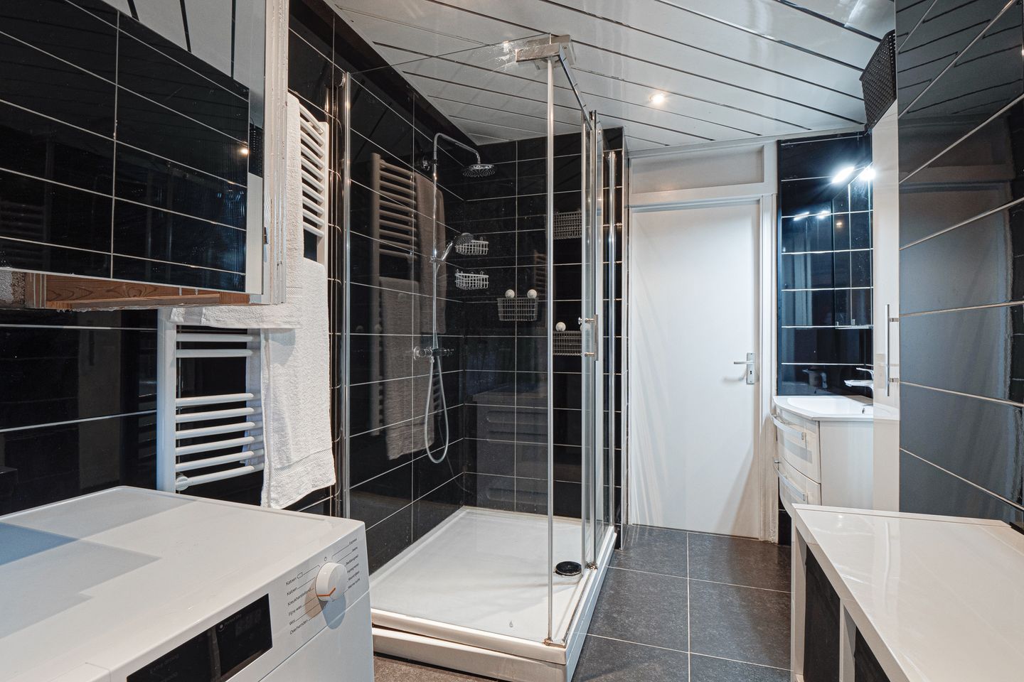 Upon entering you have access to the open hall. The kitchen is equipped with a gas hob, extractor hood, oven, refrigerator, dishwasher and a microwave. Here you will find more than enough cupboard and work space for cooking.
