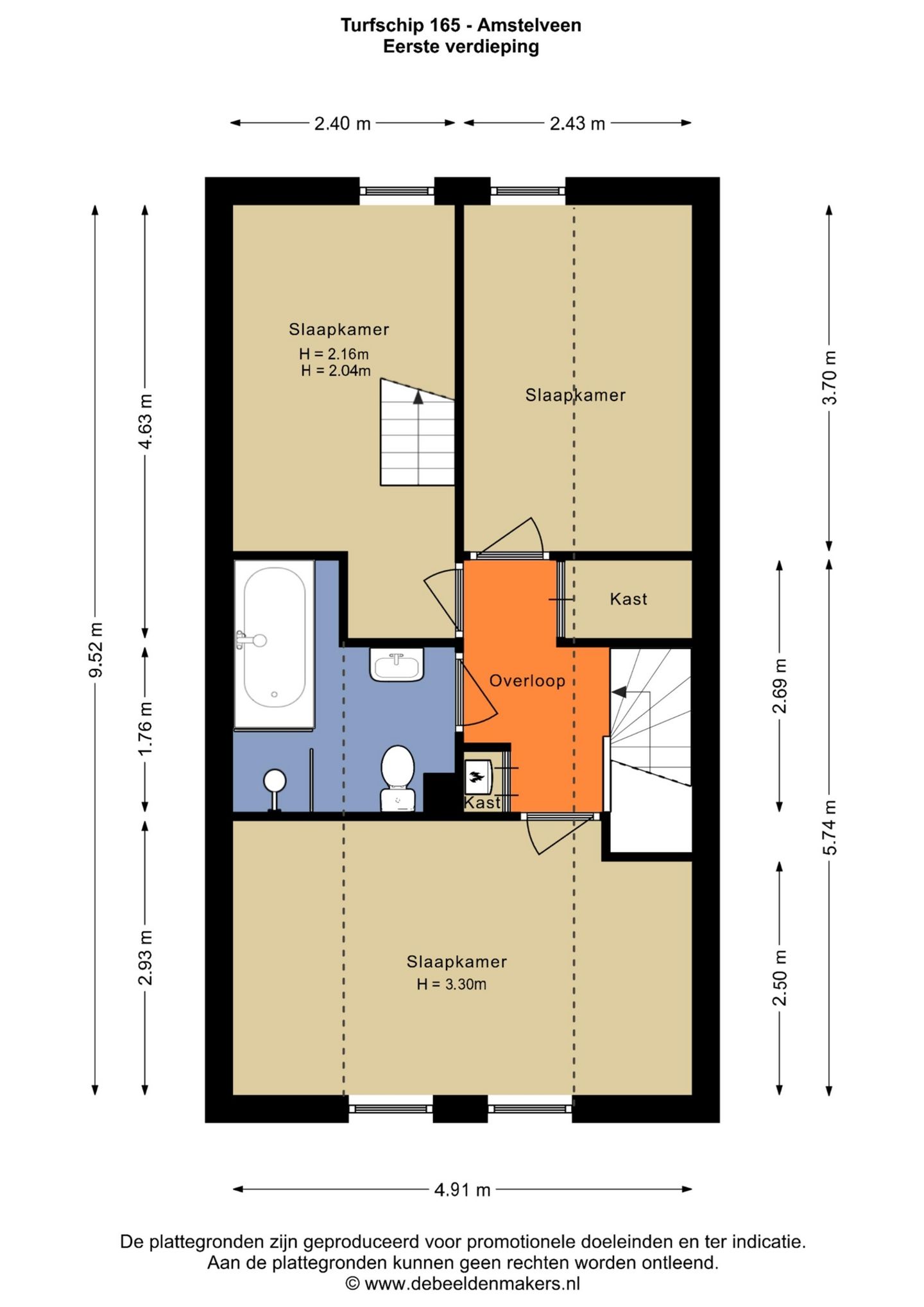 Verdieping: Overloop, badkamer met ligbad, separate douche en toilet, 3 slaapkamers waarvan 1 met spannende speelzolder voor de kinderen.
